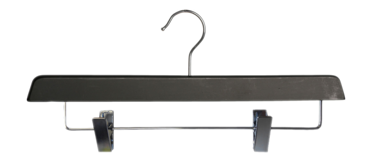 Percha madera 33cms con pinzas en color negro