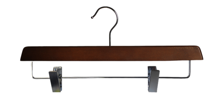 Percha madera 33cms con pinzas en color nogal